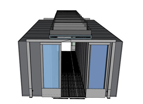 Enclosures: The hot aisle is typically enclosed by doors at each end and a roof or ceiling panels above, forming a contained space.