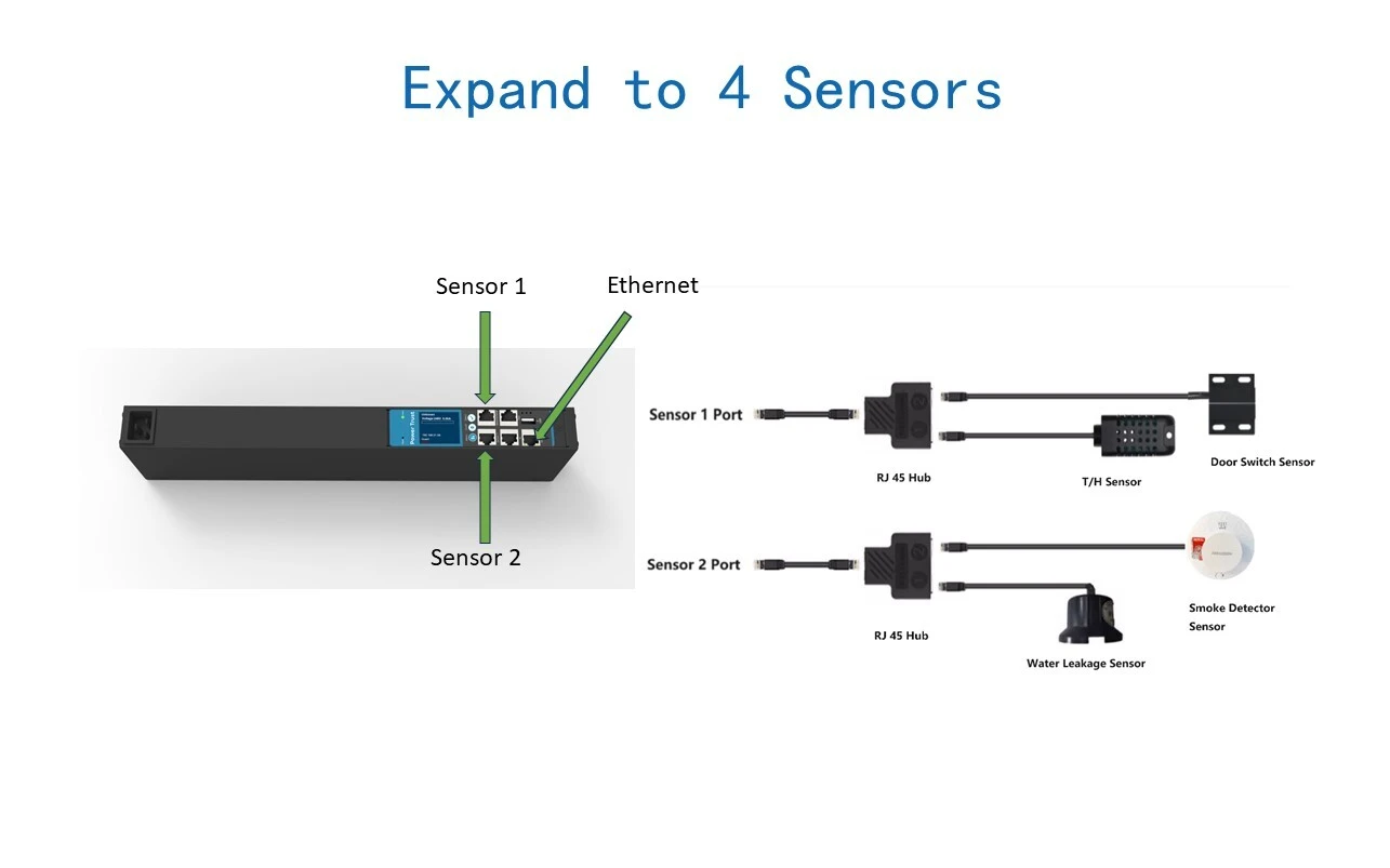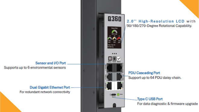 - Provide support multi-functional sensors for temperature and humidity monitoring, leakage and smoke detection, rack door status, liquid pressure measurement, and more.